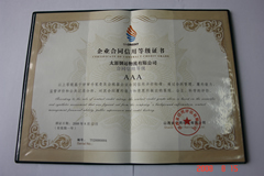 2008年8月12日,山西省信用評估有限公司對我公司的合同信用狀況進行評價,確定我公司2007年度合同信用綜合評價級別為AAA級,并頒發《企業合同信用等級證書》。